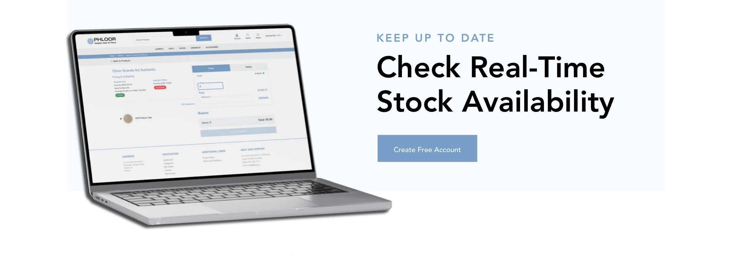 Place Your Order: Once you’ve found the perfect flooring, add it to your cart and process your order. The Customer Portal lets you check real-time stock availability before you place an order.